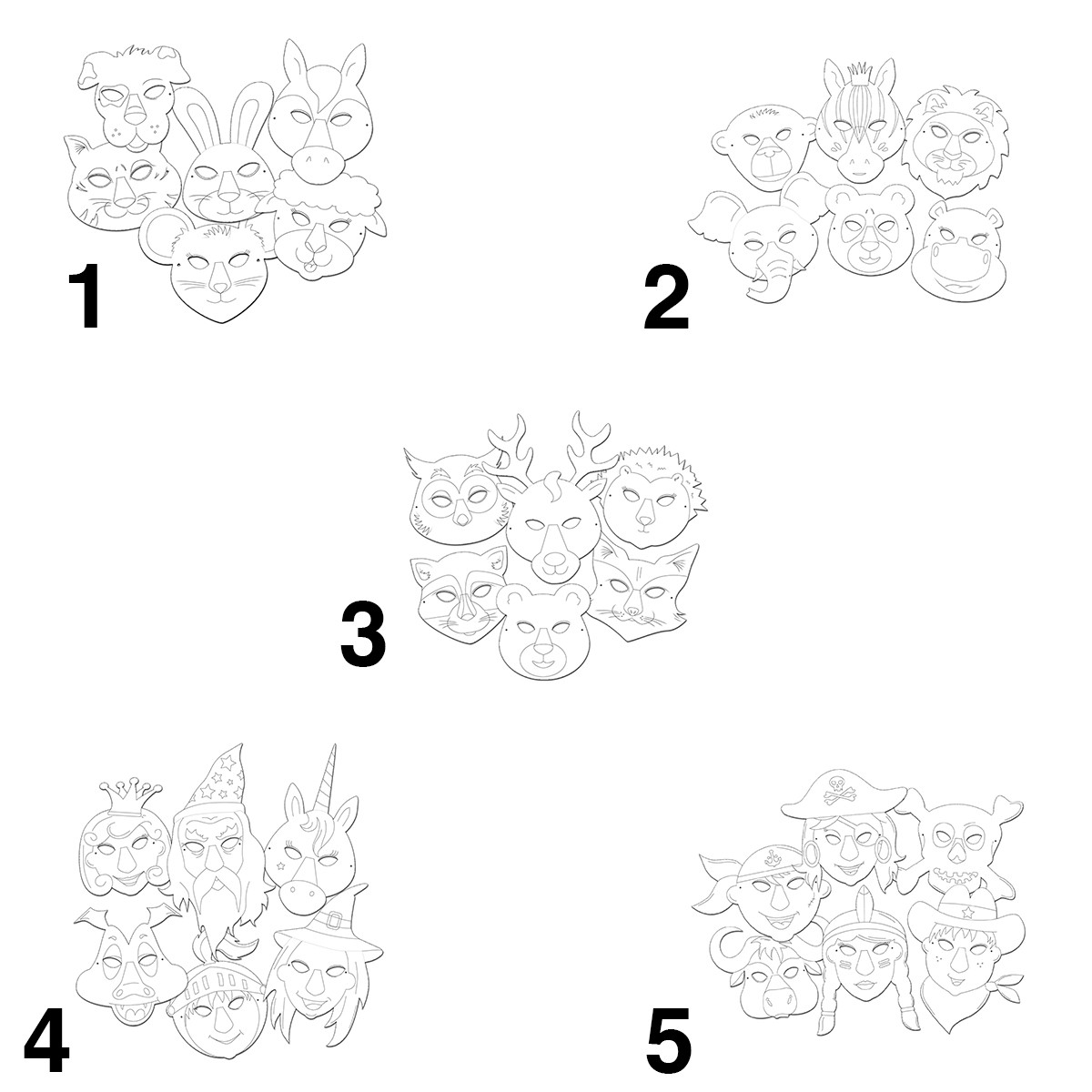Eine tolle Idee für Kindergeburtstag, Maskenball und Mottoparty oder als Beschäftigung an trüben Regentagen. In diesem Maskensortiment ist für jeden das passende Motiv dabei. Sie erhalten 6 weiße Masken, die verschiedene Tier-, Fabel oder Abenteuerfiguren darstellen. Diese können dann nach Belieben mit Pinsel und Farbe, Buntstiften und Faserstiften bemalt oder mit Papier, Strasssteinen oder anderen Materialien beklebt werden. Wenn die Masken fertig dekoriert sind, kann das im Set enthaltene Elastikband angebracht werden und los geht der Verkleidungsspaß. Die ausgestellten Nasen sorgen für einen besonders guten Tragekomfort und geben den Masken einen 3D Effekt.