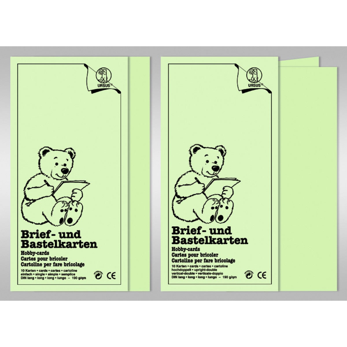 URSUS® Brief- und Bastelkarten sind aus Karton mit einer Stärke von 190 g/m². Es stehen bei dem Kartenkarton 18 Farben zur Auswahl. Im Lieferumfang sind 10 Doppelkarten im Hochformat und der Größe DIN A6 enthalten.