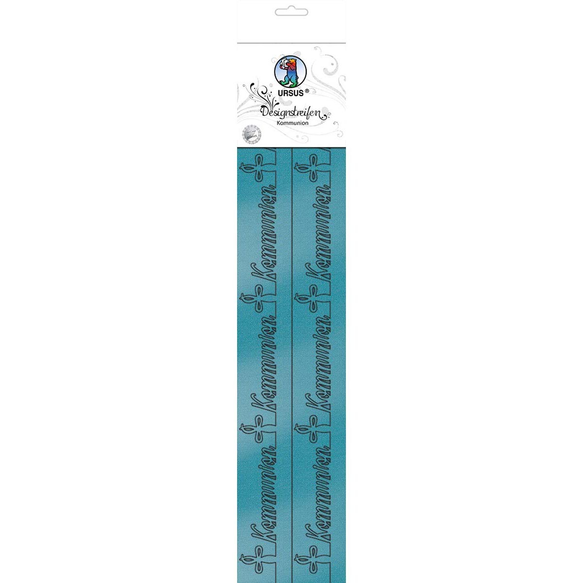 9 Designstreifen "Kommunion & Konfirmation" (7 x Struktura Pearl und 2 x Transparentpapier) in den Farben pertol und sand für die Kommunion sowie schiefer und limette für die Konfirmation zum Dekorieren und Verzieren. "Made in Germany"
