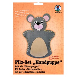 Das Filz-Set "Handpuppe" Elefant ist zum Basteln einer Handpuppe aus Bastelfilz mit einem Elefanten als Figur. Jedes Handpuppen-Bastelset enthält das komplette Bastelmaterial zum Basteln der abgebildeten Handpuppe. Die gebastelte Handpuppe hat eine Größe von etwa 20 cm.
