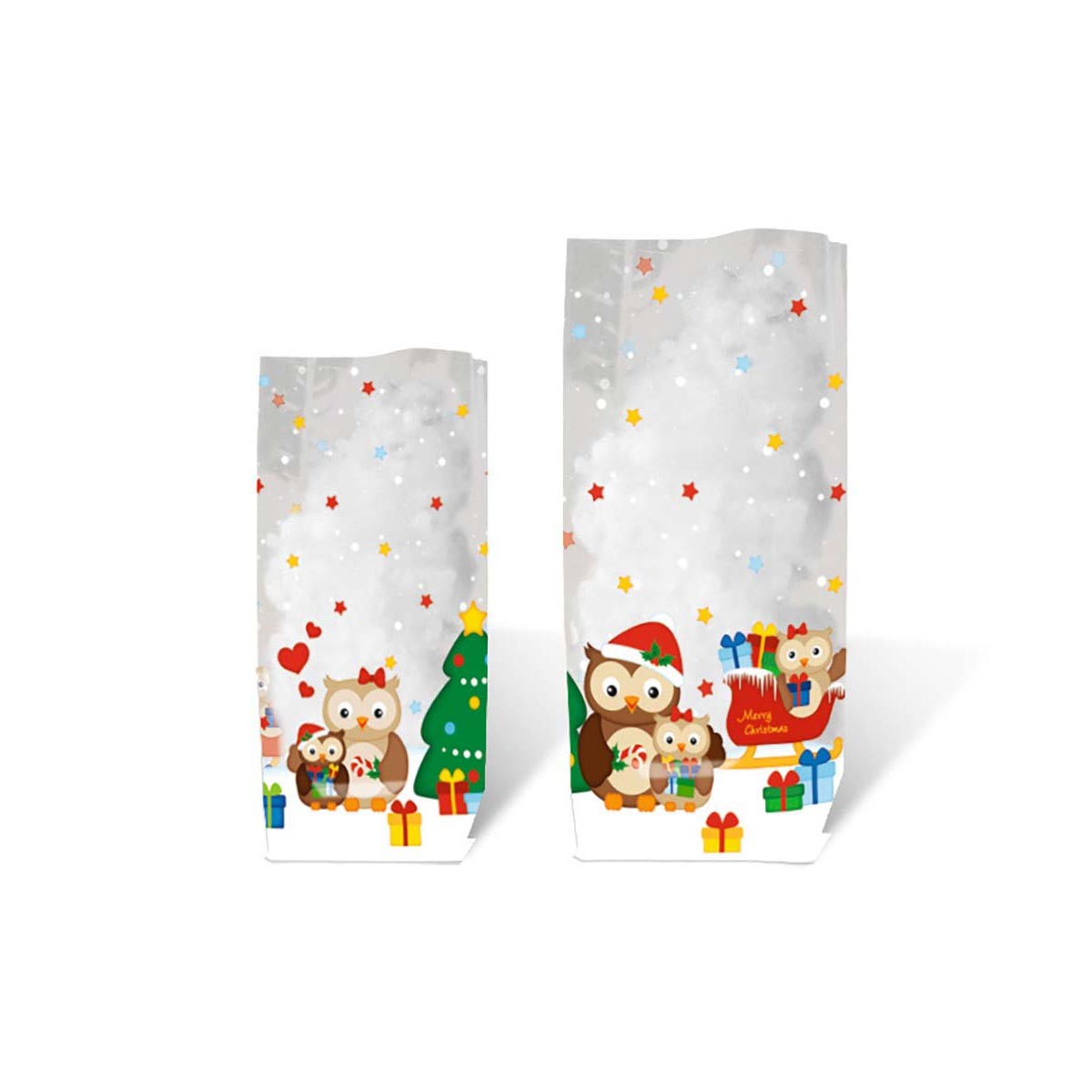 10 Geschenk-Bodenbeutel zu Weihnachten aus transparenter, unbedruckter und lebensmittelechter Folie mit dem Format 11,5 x 19,0 cm.