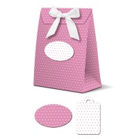 Die URSUS® Geschenkbox "Celina" sind Geschenktüten aus dem Pünktchen-Fotokarton "mini" in der Farbe Dunkelblau. Der Fotokarton hat eine Papierstärke von 300 g/m² und ist beidseitig bedruckt. Die 5 Geschenkboxen als Tüten mit weißer Schleifen in der Größe 9,5 x 12,5 x 5 cm werden aus dem vorgestanzten und genuteten Fotokarton zusammengefaltet. Die 10 Paper Tags sind ovale Sticker und Anhänger für eine individuelle Beschriftung mit Namen oder Anlass.