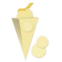 Die Geschenkbox "Chiara" sind Geschenkschachteln aus dem URSUS® Fotokarton "Jule rot" mit Elchen. Der beidseitig bedruckte Fotokarton hat eine Papierstärke von 300 g/m² und ist aus Frischzellulose hergestellt. Die 5 spitzen Geschenkboxen haben die Maße von 7,5 x 20 x 7,5 cm und werden aus dem vorgestanzten und genuteten Fotokarton gefaltet. Die enthaltenen 20 Paper Tags sind runde Sticker mit Wellenlinien für das individuelle Beschreiben mit Namen oder Anlass des Beschenkten.