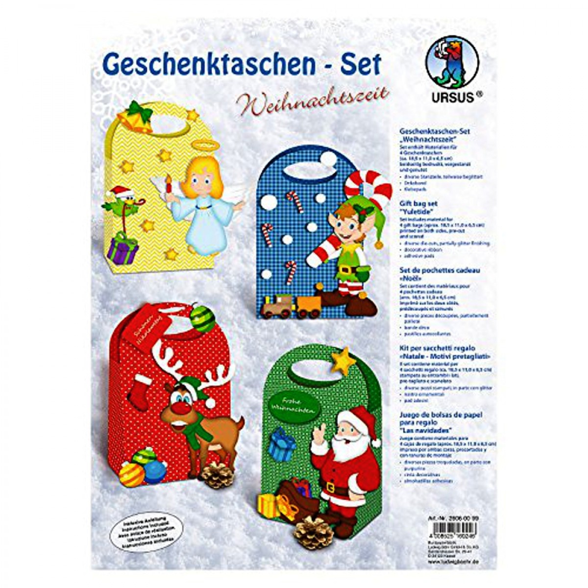 Dieses schöne Bastelset Geschenketaschen "Weihnachtszeit" besteht aus 4 Geschenktaschen in dem Format 18,5 x 11 x 6,5 cm. Jede dieser Geschenktaschen ist beidseitig mit weihnachtlichen Motiven bedruckt. Sie erhalten zusätzlich in dem Set: diverse Stanzteile, teilweise beglittert (vorgestanzt und genutet), ein Dekoband, einige Klebepads und eine Bastelanleitung.