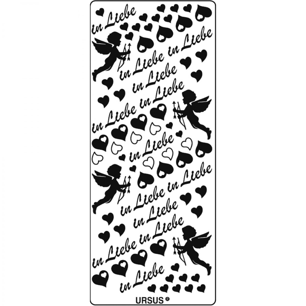 1 goldener, selbstklebender Hologramm Kreativ Sticker mit der Beschriftung "in Liebe" mit Herze und Amor in der Größe 10 x 23 cm. Gut geeignet zur Kartengestaltung, Gestaltung von kleinen Anhängern und Dekoration von Geschenken.