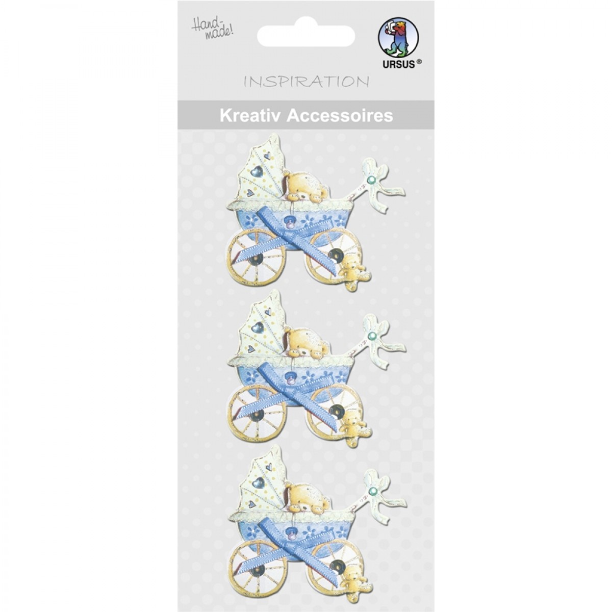 In jeder Packung befinden sich 3 blaue Kreativ Accessoires Kinderwagen. Die Kreativ Accessoires sind mit Klebepads aussgestattet und bestehen aus unterschiedliche hochwertige Materialien. Geeignet zum Dekorieren von Gruß-und Passepartoutkarten, Couverts, Bilderrahmen und Geschenkboxen.
