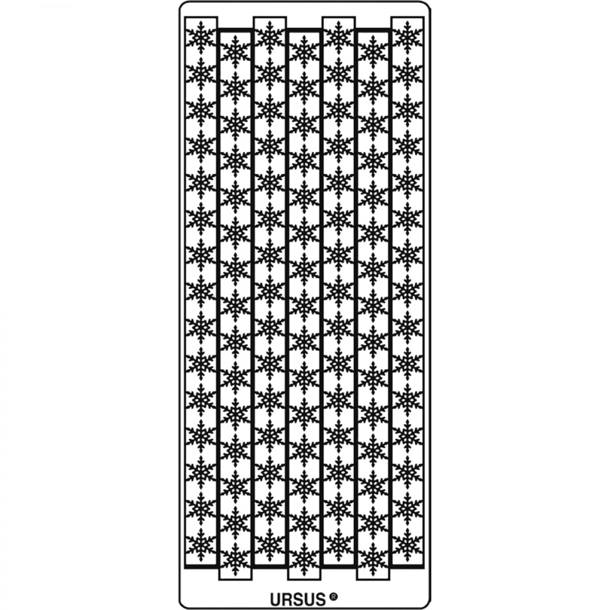 1 selbstklebender Kreativ Sticker mit Bordüren aus Schneeflocken zur Verzierung zu Weihnachten in der Größe 10 x 23 cm. Der Sticker ist in der Farbe silber. Gut geeignet zur Kartengestaltung, Gestaltung von kleinen Anhängern und Dekoration von Geschenken.