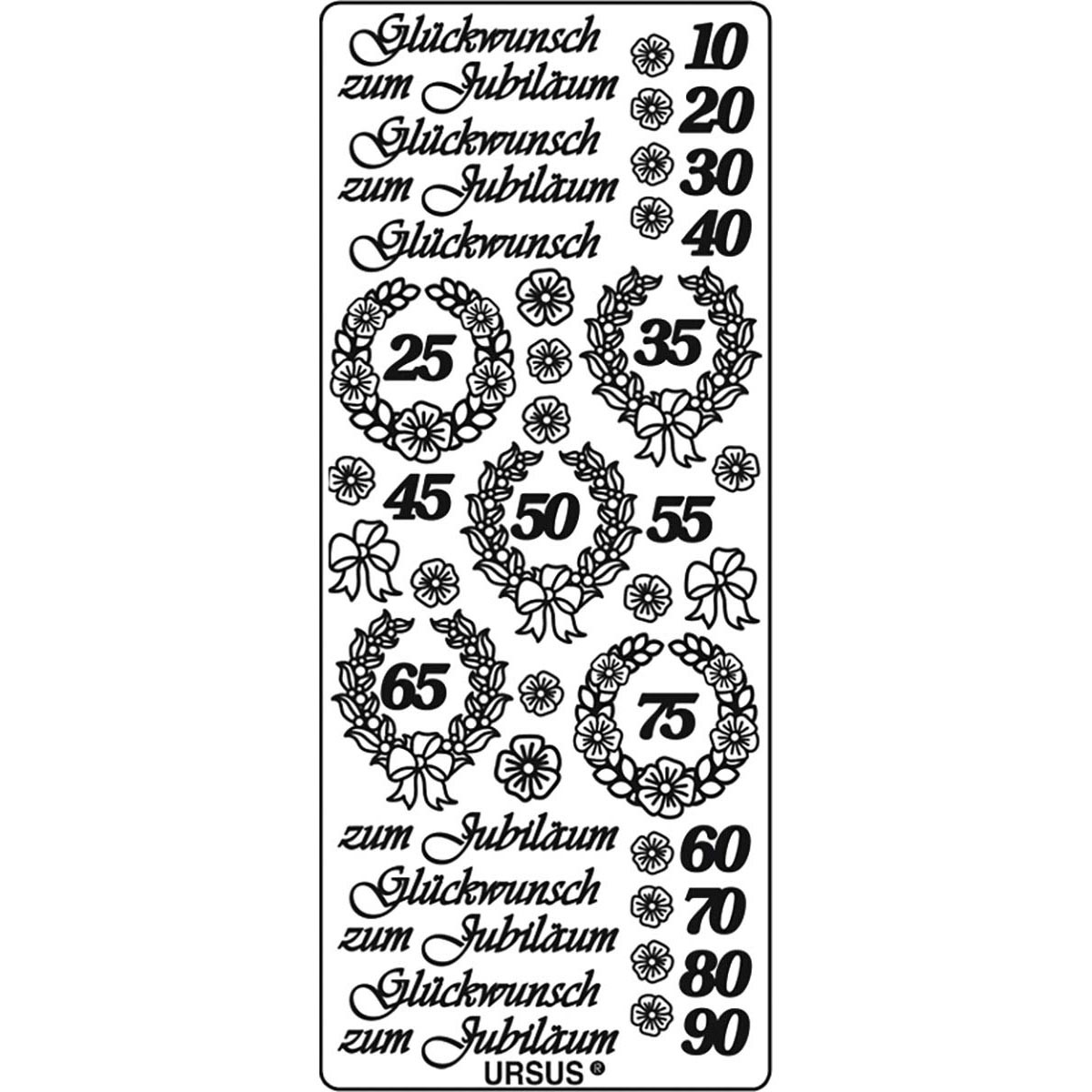 1 selbstklebender Kreativ Sticker mit Beschriftung zu den wichtigsten Geburtstags-Jubiläen in der Größe 10 x 23 cm. Der Sticker ist in der Farbe Gold. Gut geeignet zur Kartengestaltung, Gestaltung von kleinen Anhängern und Dekoration von Geschenken.