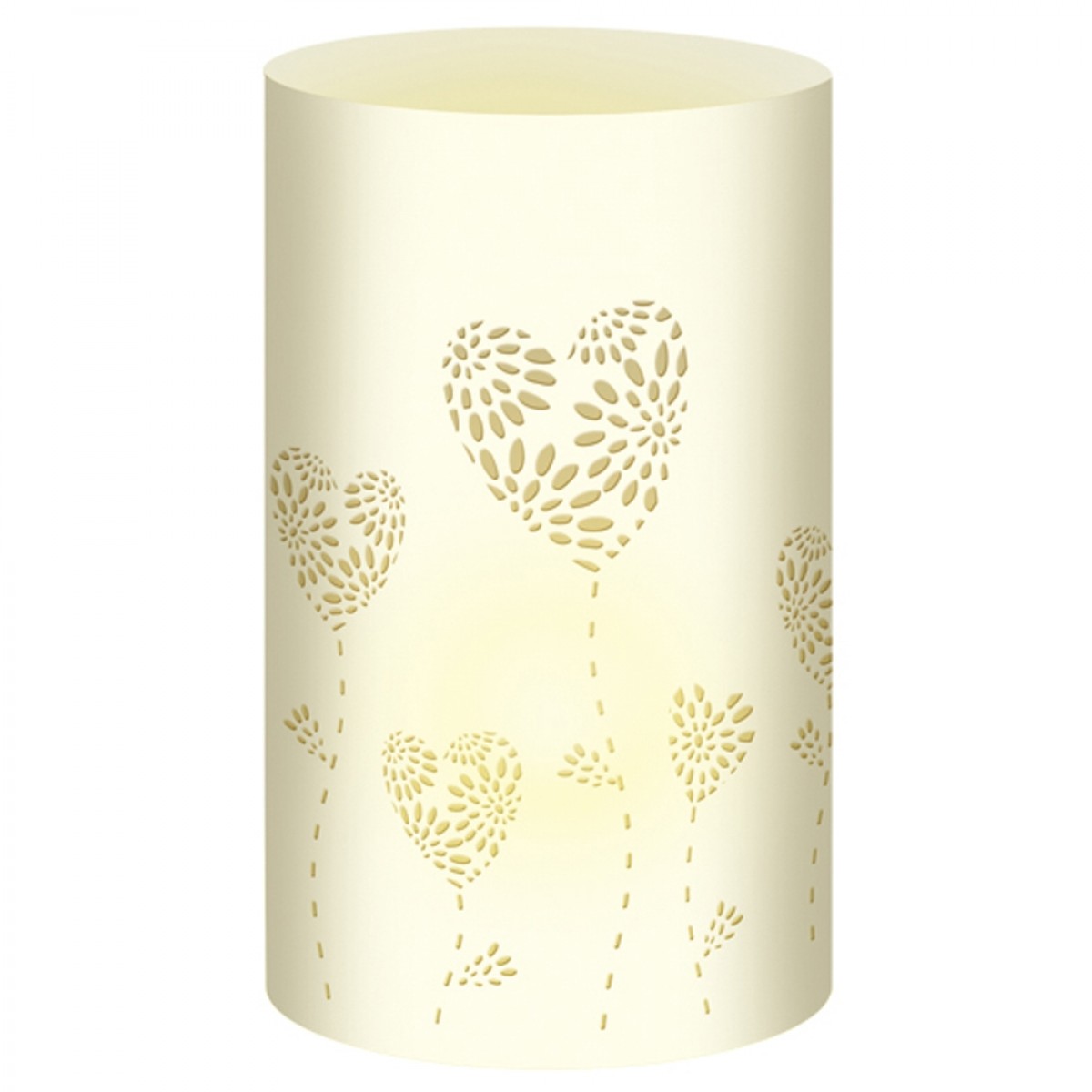 Die Silhouetten-Tischlichter "Filigrano" mit Herzblumen von URSUS® sind 5 Blatt Transparentpapier in der Farbe Creme mit filigranem Laserschnitt. Das Transparentpapier hat die Papierstärke von 115 g/qm und ist ideal geeignet zur Tischgestaltung. Die gebastelten Tischlichter mit Herzblumen haben einen Durchmesser von 8 cm und eine Höhe von 14 cm.