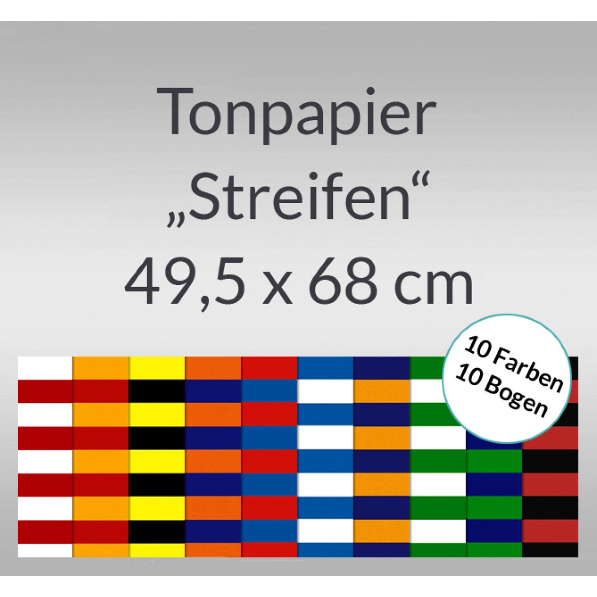 Streifen-Tonzeichenpapier 130 g/qm 49,5 x 68 cm - 10 Bogen sortiert