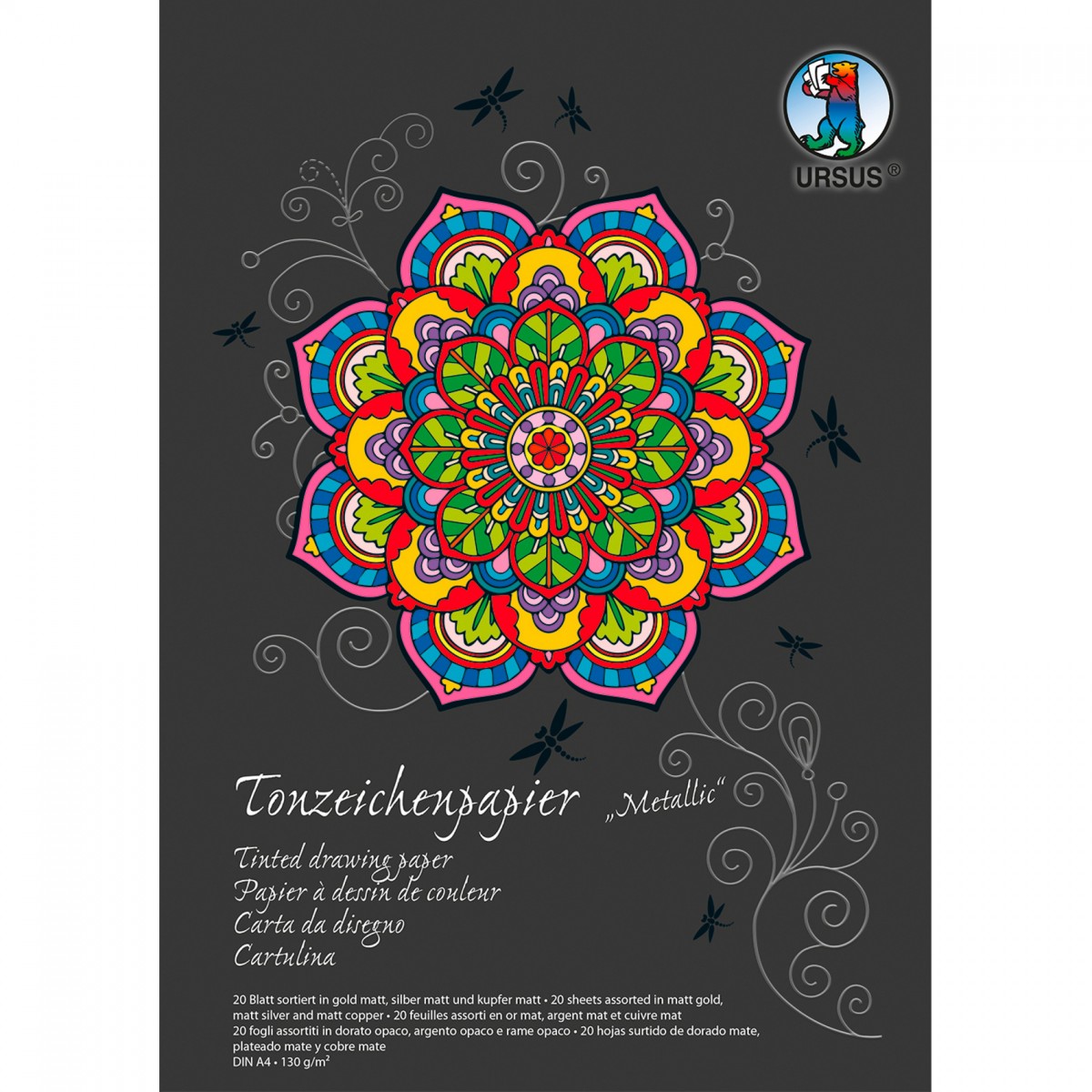 Der URSUS® Tonzeichenpapier-Block als Sonderedition ist zu 20 Blatt in der Größe DIN A4 und in 3 Metallic-Farben zusammengestellt. Das exklusive Deckblatt des Blocks hat eine Veredlung aus kratzunempfindlicher Mattfolie und bekommt seine besondere Haptik durch den partiellen Relief-Hochglanzlack. Das durchgefärbte Tonpapier der Stärke 130 g/m² weist durch die Frischzellulose eine hohe Farbbrillanz und hohe Lichtbeständigkeit auf.